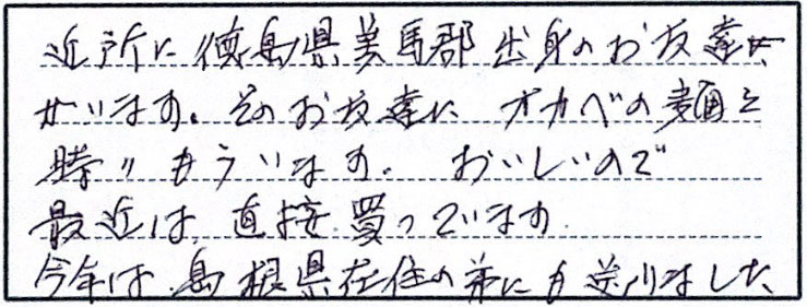 お客様の声(オカベの麺)Customer's Voice