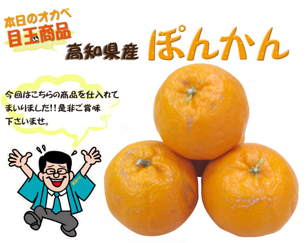 半田そうめん「オカベの麺」トップページ季節のうまいもん 今季 ぽんかん ぽんかん【P】 価格: ¥1,890 (税込) 販売期間: 2026年02月14日20時00分~2026年02月19日23時59分 数量: 箱 在庫: 誠に申し訳ございませんが、ただ今品切れ中です 在庫 誠に申し訳ございませんが、ただ今品切れ中です 返品についての詳細はこちら 商品詳細 お客様の声 ギフト レシピ 毎年好評のぽんかんです!! 表面に少々黒くこすれ、キズなどがございますが、もちろんお味には影響が ございませんのでご安心くださいませ。瑞々しくおいしいぽんかんです! 無くなりしだい終了となりますので、何卒ご了承くださいませ。 数量限定 送料・税込 1,890円 ぽんかん【約5Kg】 (サイズの指定はいただけません) ※ご注文前にご確認くださいませ※ お届け日のご指定、商品のサイズのご指定は承れませんので何卒ご了承くださいませ。 無くなりしだい終了となりますので、何卒ご了承くださいませ。