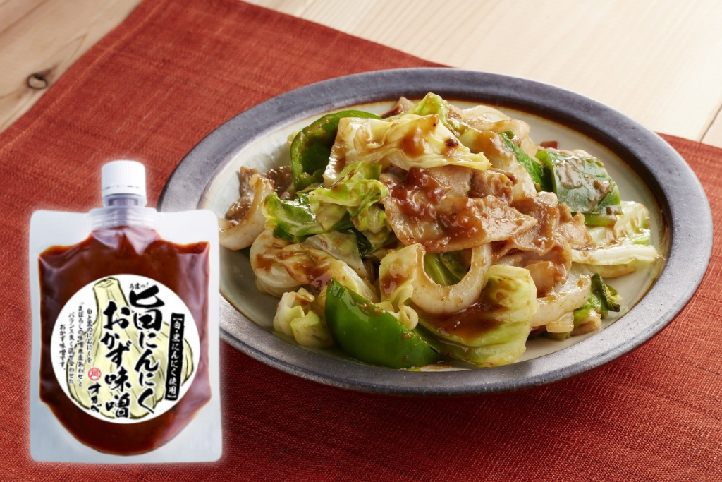 青森県産のピリッとした白にんにくのすりおろしと、熟成された甘みのある黒にんにくのペーストを、「現代の名工」とされる永田富浩さんが手がけた貴重な”まぼろしの味噌米麦あわせ”とバランス良く混ぜ合わせたおかず味噌です。これだけで味がしっかりしているので、ご飯のお供はもちろん、野菜炒めなどの調味料としても使い勝手の良い商品です。