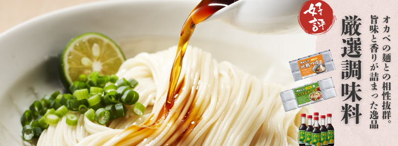 そうめんのツルッとのど越しと、うどんのモチッと食べ応えと、両方楽しめるおいしさは、まさに、二つのいいとこどり。それがオカベの麺なのです。「うどんはお腹がいっぱいになりすぎて、でも、そうめんだと物足りない」そんな人にぴったり!
