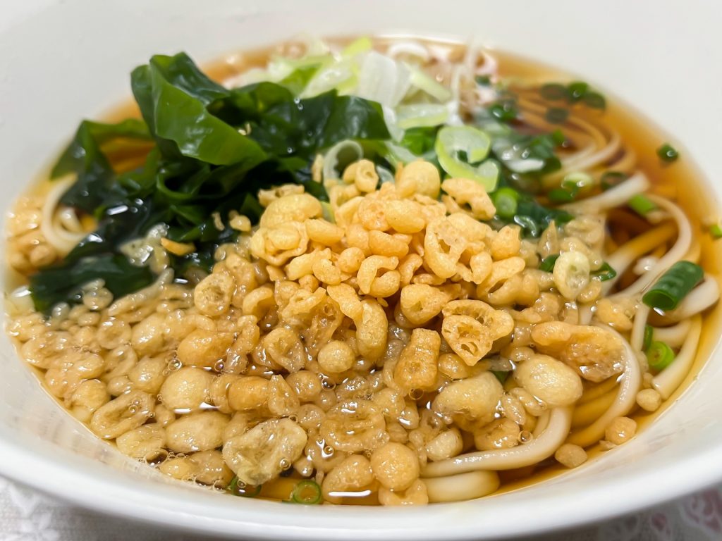 香ばしさとコクをプラスしてくれる天かすは、そうめんを一気に満足感ある一皿に変えてくれます。サクサク感を活かすため、食べる直前にのせるのがポイント。