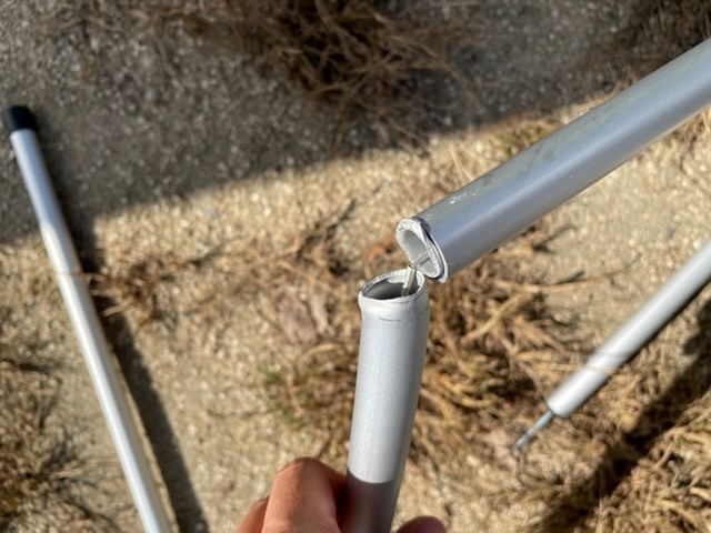 タープがへしゃげるわ、挙げ句の果てにポールがへし折れました。