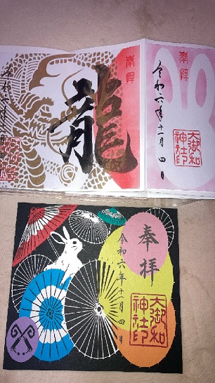 御朱印もウサギをモチーフにしたかわいいデザインのものもあり、1つに絞れず結局3枚の御朱印をゲットしてきました😆その内の1つは何と切り絵タイプ。神社のマークと和傘、ウサギのモチーフが素敵です。
