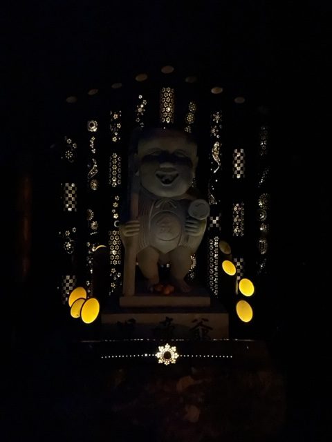 その子泣きじじいの周りに竹燈籠が作られてました。