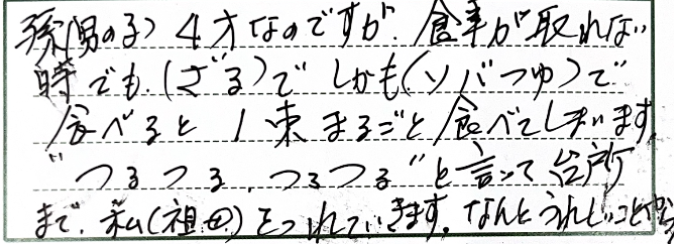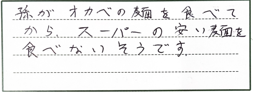 コシがあって、めちゃくちゃ美味しい!今回は、蕎麦とふし麺も購入してみました。ふし麺は、孫(1歳4カ月)の離乳食に出してみましたが、美味しかったらしく完食してくれました。元々、麺が切れて居るのでとても調理が楽で良かったです。次回は…