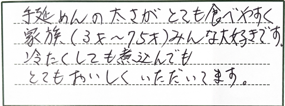 はりがあり食べ応えがあります。娘に送ったところ孫が大変美味しいと言っていたよ、と。それならばと今回は家用と娘家族にしっかりうどんもそばも箱で送ってやりました。