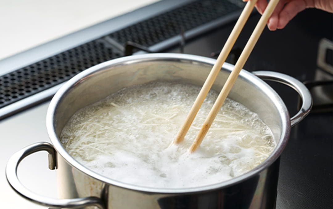 たっぷりのお湯で茹でましょう。