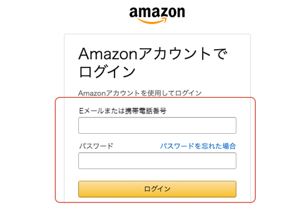 Amazonアカウントにご登録のメールアドレス/パスワードを入力して