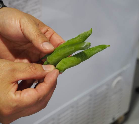ひとつひとつ丁寧に収穫した青唐辛子は、