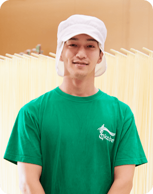 オカベでは、幅広い年齢層の方が働いています。お客さまが笑顔になれるおいしい麺をお届けするには、つくり手が笑顔でなければいけません。