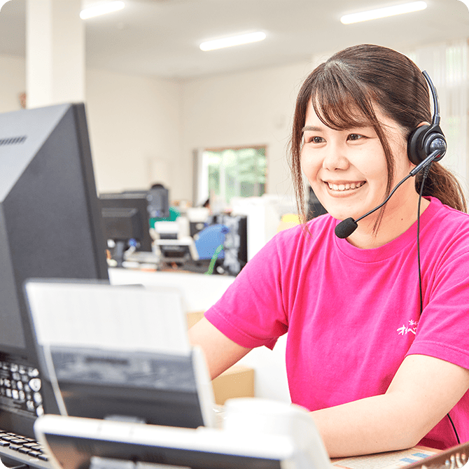 私の仕事は、注文書入力や電話対応などの受注業務と注文の伝票出力などです。その中でも、お客さまと直接関わる電話対応では、言葉遣いや正しい敬語表現が難しくて今でも考え込んでしまうことがあります。しかし、対応したお客さまから「すごく気持ちのいい対応だったよ」と言ってもらえたときは、嬉しくてやりがいを感じますね。これからも対応したお客さまに少しでも満足していただけるように、私なりにいろいろと工夫しながら接客していきたいと思います。